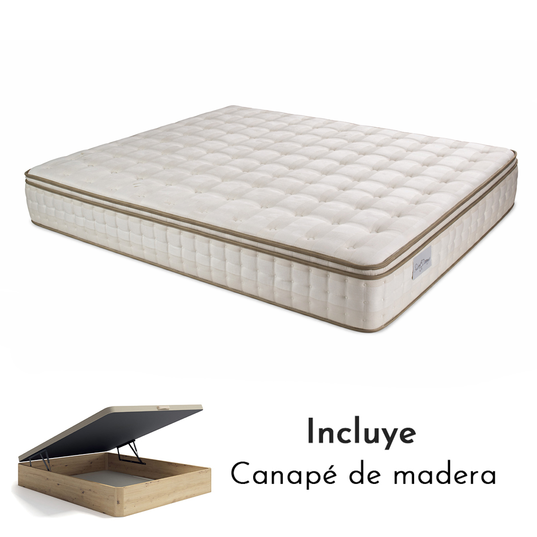 Por el mismo precio podrás tener un colchón de gama alta con un diseño exclusivo y el mejor confort para tu descanso con el regalo de un canapé abatible en el color y la medida que necesites o si lo prefieres una base tapizada con una estructura reforzada, que dará a tu descanso un plus de firmeza.